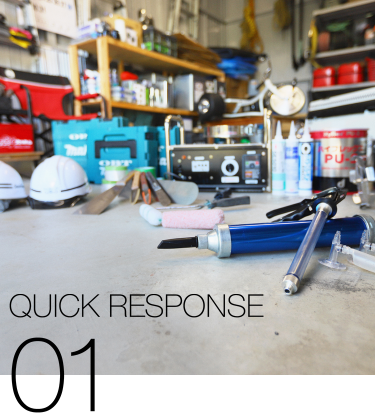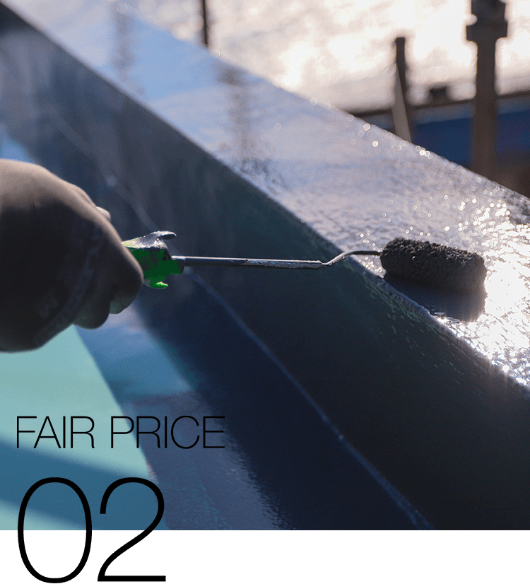 防水の性能と耐久性を確保するために、経験と実績の豊富な自社職人が責任を持って施工をおこないます。