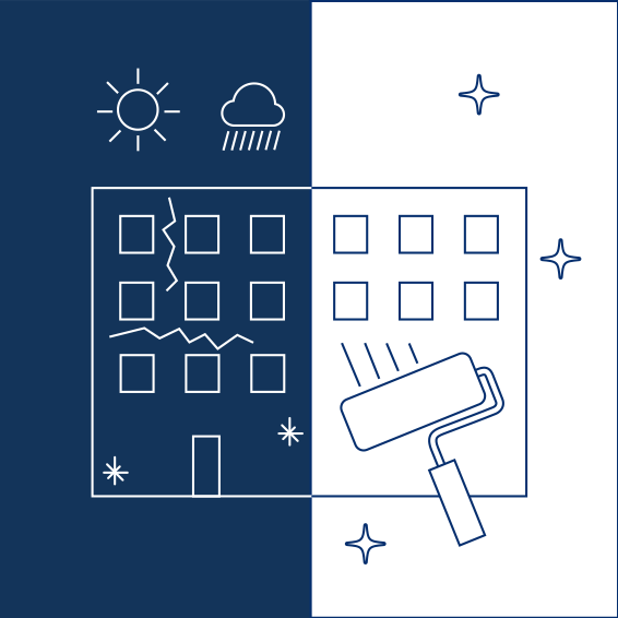 塗装が劣化することで外観が損なわれるだけでなく、爆裂や欠損が起こり、雨漏りへと繋がります。重大な問題が起こる前に最適な工法と材料で対応いたします。